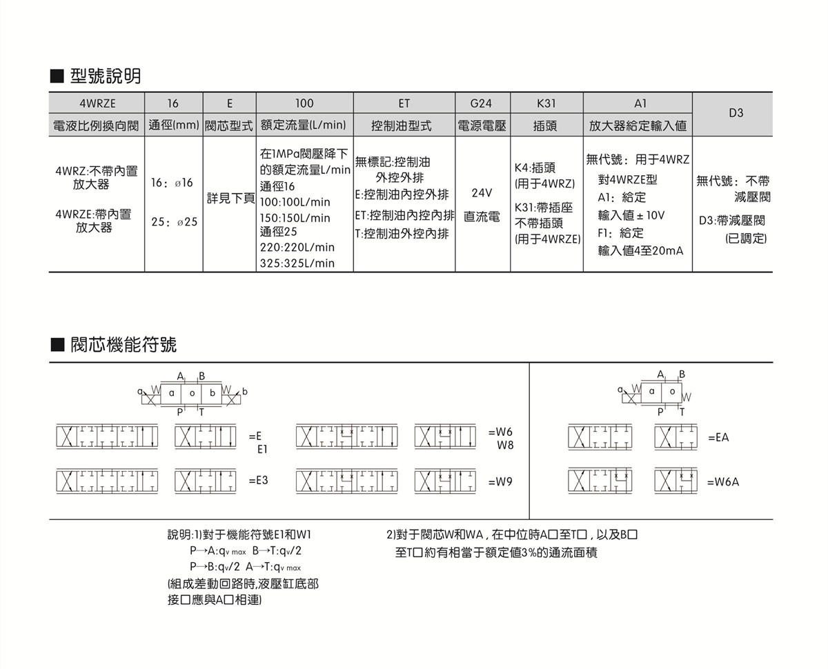 ● 4WRZE: 帶集成式放大器 , 可與歐美同類(lèi)型產(chǎn)品互換。
